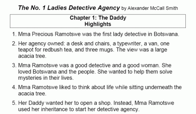 A series of captivating vignettes about Precious Ramotswe, Botswana’s one and only lady private detective.