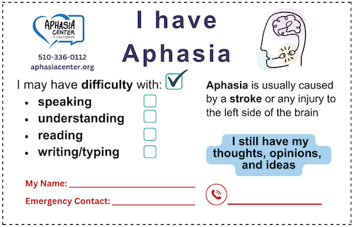 Click to download. If you need assistance printing materials, please contact our office at info@aphasiacenter.org or call (510) 336-0112.